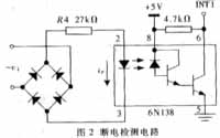 在测试漏电保护器的动作特性时,必须准确测知漏电保护器的动作时刻。本系统设计的断电检测电路见图2。
