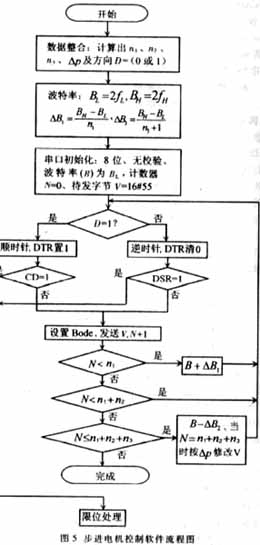 用串行口直接控制步进电机的控制软件流程图如图5所示。