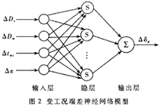 变工况端差Δδg=f(ΔDs,ΔDw,Δtwi,Δε,)可由三层前馈神经网络来逼近,如图2所示。