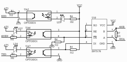 为了可靠的工作,在RS-485总线状态切换时需要做适当延时,再进行数据的收发。具体的做法是在数据发送状态下,先将控制端置“1”,延时lms左右的时间,再发送有效的数据,一包数据发送结束后再延时lms后,将控制端置“0”。这样的处理会使总线在状态切换时,有一个稳定的工作过程。