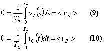 通过将[等式 7] 和[等式 8] 的两端除以开关周期获得等效形式:
