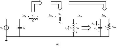 正如图 2a 中所描述的那样,关闭开关时,能量从输入源传递到L1,并从C1传递到 。 在此时间内,C2向负载提供必要的能量。 当最终打开开关时,如图 2b,L1和L2中存储的能量通过二极管释放给C1、C2 、 和负载。