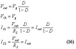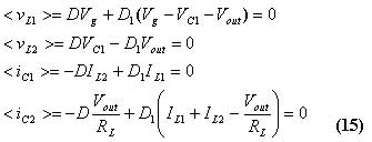 其中, 代表开关的工作周期, 是工作周期的补量,定义为 。 此等式系统的解答可表示如下: