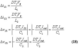 这些表达式可用于选择L1 、L2 、C1 和C2 的值,以便获取开关纹波量值的所需值。