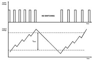 随着转换器的输入电压下降,交流电荷传递变为振荡器电流的更大百分比;结果是工作周期增加。 通过为 τ 选择相应的值,电荷传递量增加,因为振荡器因输入下降而减慢。
