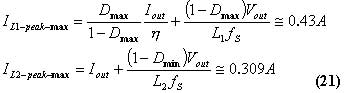 我们选择L1=L2=15UH,它可以处理下列最大峰值电流: