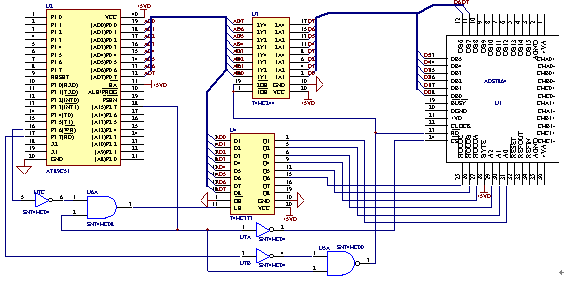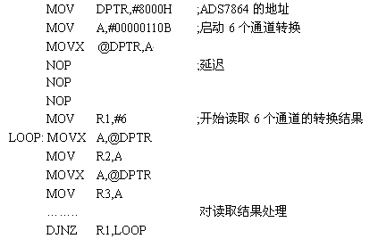 根据真值表,可以用图4中的逻辑电路来实现这两个使能信号。系统的最终目标就是获取数据,然后计算得出结果。89C51控制ADS7864转换和读取转换结果的代码如下:
