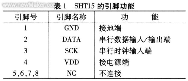 SHT15的引脚比较少.使用方便。其引脚排列如图2所示。引脚功能如表1所示。SHT15型智能传感器的相对湿度测量范围是0"100%。分辨率达0.03%,最高精度为+2%RH,温度测量范围是—40℃一十123.8℃.分辨率为0.1℃.电源电压范围是+2.5V一+5.5V.响应时间小于3s。