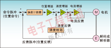 图2:在伺服系统中,通过位置、速度/角速度和电流环实现闭环操作。