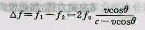 因此,声波接收器和发生器间的多普勒频移Δf为: