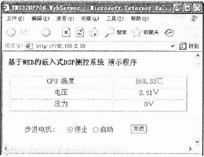 本文介绍了一个带有嵌入式Web服务器的小型TCPIP协议栈,以TMS320F206为Web-Server,通过Web浏览器远程监测传感器采集的温度、压力值和电位器的输入值,以及远程控制步进电机。
