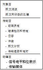 对象层的功能是报文滤波以及状态和报文的处理。传输层是CAN协议的核心。它把接受到的报文提供给对象层,以及接受来自对象层的报文。物理层定义实际信号的传输方法。物理层的作用是在不同节点之间根据所有的电气属性进行位信息的实际传输。