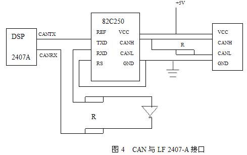 PCA82C250: 为LF2407内嵌式CAN 控制器与CAN 总线的接口收发器。8脚,高速,可达1Mbps传输速率。它提供了对CAN总线的差动发送能力以及对CAN控制器的差动接收能力。