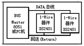 一线网络也称为微局域网(MicroLAN),是由总线主机(BUS Master)、数据线—普通双绞线(及其扦接件)和1-Wire器件等三类设备所构成的,如图2所示。