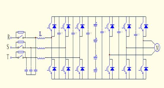 为了再生能量能够回馈电网,变频器的主回路采用双向逆变方案。主回路原理示意图如图 4 示。
