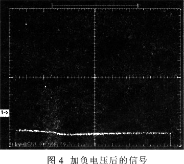 首先给出一个前提,即在短时间内随机干扰信号的平均值是不变的。在此前提下通过检测一次基准值,再检测一个加直流电压后的信号值的方法配合一定的算法实现信号分离。但在实现过程中,由于干扰信号几乎将有用信号完全淹没,放大电路极易饱和,在前置通道中不能实现增益足够大的放大,为了解决这一问题,可以应用数字电位器实现一个程控差分对消器,使得信号的分辨率足够大。图3、图4分别给出了用示波器捕获的基准信号及加电后的信号,此时为绝缘老化中期的信号。对比可以看出,已能够将有用信号容易地分离出。