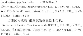送控制信息给端点2,固件程序根据所送之数进行"准备测试"或"测试完成"操作。