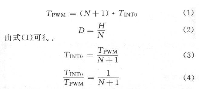 设外部计数时钟周期为TINT0,锯齿波周期(PWM脉冲周期)为TPWM,PWM脉冲宽度占空比为D,由图5可得出如下关系: