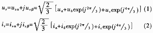 由3相/2相坐标变换可以得到如下的定子电压和电流空间矢量表达式:
