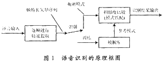 语音识别的基本原理框图如图1所示。语音信号中含有丰富的信息,从中提取对语音识别有用的信息的过程,就是特征提取,特征提取方法是整个语音识别系统的基础。语音识别的过程可以被看作足模式匹配的过程,模式匹配是指根据一定的准则,使未知模式与模型库中的某一模型获得最佳匹配。