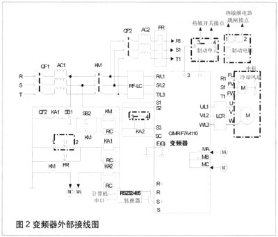 设计变频器外部连接线如图2所示,这里,MA、MB为故障输出端子。