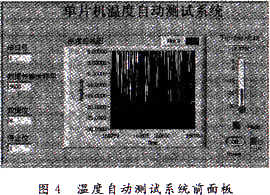 LabVIEW中的前面板就是图形化用户界面,用于设置输入数值和观察输出量。本系统的前面板中设置波特率、串口号、数据位和停止位为控件,用实时趋势图控件Waveform Chart来显示下位机实时采集到的数据。如图4所示,给出本系统的前面板设计。