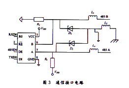 LPC2132具有两个符合16C550工业标准的通用异步收发器(UART)接口,实现下位机和上位机,保护器和计算机监控系统之间的实时通信,通讯地址设置为(1~250),通讯速率(1 200~115 200 kb/s)可设,采用国际标准的MODBUS协议,根据所测量参数设置通信规约。为防止数据在通讯传输的失真的情况,在接口电路中加入了光藕隔离。通信接口电路设计如图3所示。