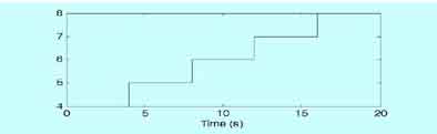 实验中,模拟风速为4、5、6、7和8m/s风力机特性如图5所示,图6为相应的参考转矩曲线,可以看出,参考转矩随风速的不同而作相应变化。图7为异步电动机输出的转矩曲线。