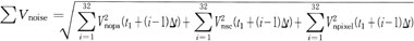 ,Vnopa、Vnsc和Vnpixel分别为运放、开关电容电路和像素单元在积分器输出端的等效噪声。假设像素单元每次读m的信号是相等的,读出的噪声也是相等的,如果忽略运放和开关电容电路引入的噪声,则