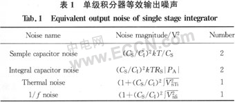 倍,其中n为积分器的级数。对于CMOS电路,器件噪声是不可避免的,因此低噪声的电路设计是提高该电路信噪比的关键。