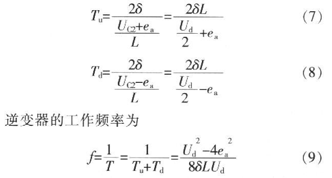 下面以A相为例,分析采用滞环控制时逆变器的工作频率f与电网电压ea、变流器直流侧电压Ud及主电路电感值和滞环宽度δ间的相互关系。
