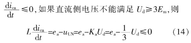 如果直流侧电压不能满足大于有源电力滤波器与供电系统连接点的相电压峰伉(Em)的3倍,即