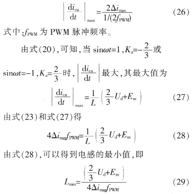 因而可以根据式(23)和式(29),并结合实际情况对交流侧电感值进行选取和调整,从而选择合适的电感值。
