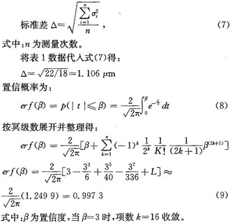可以认为系统精度为3.32μm。此时置信概率为99.73%,完全可以说明系统的情况。