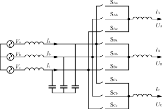 对于图1的矩阵式变换器实际结构,j∈{A,B,C,},k∈{a,b,c}。按照输入电压不能被短路,输出电路不能突然开路的原则,每一输出相只能连至且必须连至一个输入相,开关函数须满足