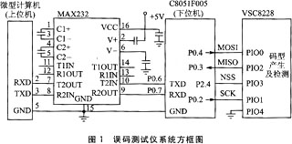 随着通信技术的不断发展,通信系统信号处理越来越快。在这种情况下,对于高速通信系统性能的检验,就需要高速误码测试仪。目前市而上已有多种误码测试仪。国内产品的信号处理速度较低,而国外产品的功能虽然比较完善,处理速度很高,但其价格也相对较高。本文根据Vitesse公司的VSC8228芯片特点,利用C8051F005单片机设计出一种价廉的高速误码测试仪。下面将对其软硬件设计,特别是C8051F005与上位机的串口通信以及与VSC8228的SPI通信进行详细探讨。