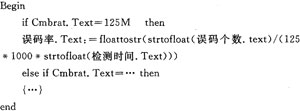 上位机主要实现以下功能:显示当前日期和时间;根据检测需要设置检测参数(产生码型、检测码型、速率、输出去重、摆动输入均衡、探测门限等);运行时间及BER的计算,控制按钮及LED显示检测状态。状态灯可以显示的状态有“无信号”、“同步态”、“失同步态”与“等待态”等。它是在WindowsXP环境下采用Delphi语言编写的。首先在Delphi里加载串行通信功能的SPCOMM控件,它使用非常方便。由于Delphi采用事件驱动模式,程序员只需要对Delphi组件的属性、事件进行编程,然后再由这些组件对相应的事件进行响应。这样就使得各个事件彼此完全独立,减少事件间的耦合性,可以大大提高程序的稳定性和可靠性,同时简化程序的编码过程。