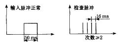 根据转盘式电度表的结构,它的脉冲与转盘所转的圈数成正比,脉冲数累计后再乘以系数即可得到相应的电度量。为提高脉冲计量的准确性,软件设计时采用定时连续采样的方法。一个有效的电脉冲宽度在50ms以上,设计采用的定时周期为16ms.对于正常脉冲,定时采样连续测得脉冲为高电平的次数≥2,见图2。若脉冲宽度太小,测得次数不够2次,这时可以把这个脉冲去掉。