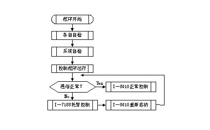 由于I-7188EAD与I-8410均具有控制功能,两者之间必须相互配合,协调运行才能使系统的可靠性提高,因此,本系统软件设计的关键便是I-7188EAD与I-8410之间的通信程序。需定义两者之间的通信方式、协议等,由于I-7188EAD与I-8410各自有RAM、ROM以及EEPROM,利于系统编程和存储一定的数据,在程序设计时,其通信的心跳信号是I/O信号,相互之间仅传送必要的控制信息并加以存储。在MiniOS7操作系统下、利用TC2.0以及各自的库函数编写。其流程图见图3所示。