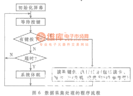 当指定时间内没有键按下, 系统则进入休眠状态, 从而达到省电的目的。程序流程图如图6。