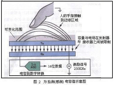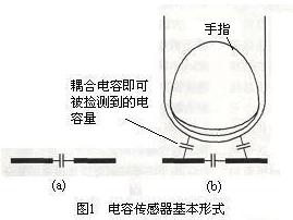 典型的电容式传感器具有10pF-30pf的电容值。手指通过1mm的绝缘透明塑料膜耦合至传感器的电容通常为1pF-2pF。当采用较厚的透明塑料膜时,耦合电容减小。为了检测手指的存在与否.需要设计能够测量出由手指引起的1%电容变化幅度的电容式触摸感应电路。