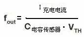 弛张振荡器是一种有效而简单的电容测量电路。典型的弛张振荡器电路拓扑结构示于图4。该电路由4个元件组成,一开始.放电开关处于开路状态。当该开关开路时,全部电流均进入传感器。导致其电压线性转换。该充电操作持续进行。直至传感器电压达到比较器的门限电平为止。比较器随后从低电平变换至高电平,导致放电开关闭合。电容式传感器通过该低阻抗路径迅速放电至地。该过程将使比较器的输出从高电平变换至低电平.然后重复这一循环。如下面的公式所示,输出频率(fout)与充电电流成正比,而与门限电压和传感器电容成反比。测量该频率.以确定传感器电容: