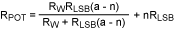 用于计算RPOT的数字电阻模型如图2所示,对于指定位置,相应的开关将闭合而其它位置的开关开路。电位器每递增一个单元位置,电阻将相应增加1 LSB (对DS3903,10kΩ/128 = 78Ω),最高抽头位置除外,最高抽头位置为电位器电阻的并联组合,会引起非线性。可通过下式计算RPOT: