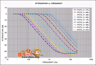 电位器的分辨率(如128或256抽头)决定了截止频率的调节精度,抽头数越多,截止频率的调节精度也越高。对于音频应用,不太可能使用64或128抽头以上的电位器来设置低通滤波器的截止频率。对于宽带应用可能要求更多的电位器抽头。
