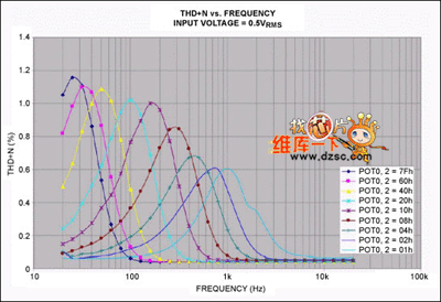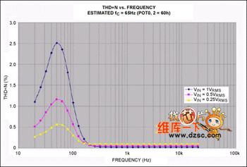 利用Audio Precision?测试设备对图1电路进行测试,可以得到图4至图6所示的衰减特性和THD+N性能。