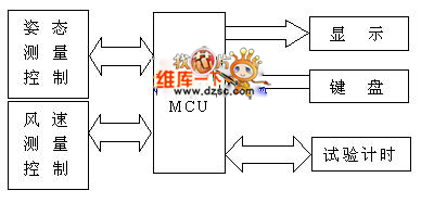 系统用单片机作控制器,采用定位精确的步进电机作为模型姿态执行元件,高精度的角位移传感器做测量元件,实现对模型的精确控制。系统由微控制器、键盘、显示、攻角及侧滑角采集、姿态控制、风速采集、试验计时等模块组成,总体方案如图1所示。