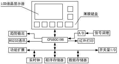 智能仪器的核心是单片微机,其性能对整个嵌入系统性能有重要影响。选择时既要考虑到工业应用的背景、功能具有一定先进性和高可靠性,又须满足分析仪器多品种、小批量的功能平台要求,易于开发移植和更新换代。为此,确定Intel公司的80C196kc芯片作为分析仪器信息处理单片,构造便携式仪器监控平台。