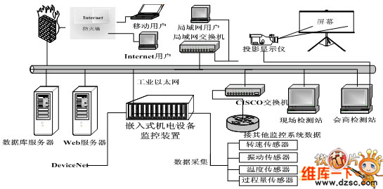 (3)在线监测模块:包括嵌入式Web服务器和监测网站。服务器生成用于远程监测和故障诊断的web页面。网络用户可以随时掌握现场运转情况,使远程监控真正实现。