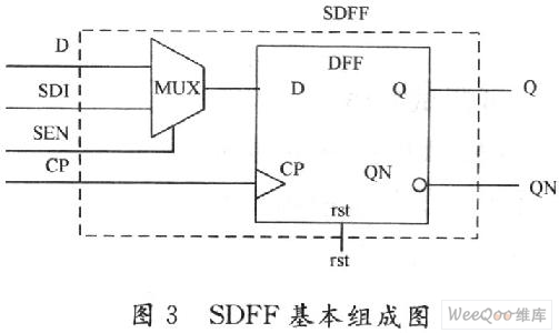 图2中虚线部分为扫描触发器,即扫描链的基本组成单元,其构成原理如图3所示。