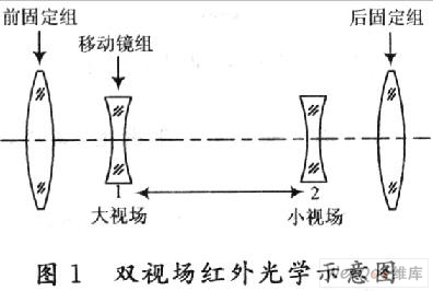 常见的双视场变焦系统分为两类:光学镜组移入移出切换式变焦系统和双位置变焦系统。切换式变焦系统需要将部分透镜插入到适当的位置改变光学系统的焦距,因此横向尺寸较大。双位置系统则是通过改变透镜组轴向距离而改变系统的焦距,可有效减小系统的体积,并且可同时实现视场切换和精密调焦的功能。